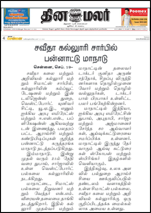 The International Conference (ICMRI 2024), hosted by Dept. of Computational Intelligence, Saveetha College of Liberal Arts and Sciences, with Westford University College, Sharjah, Dubai, and ESN Publications, India scheduled from September 19-21, 2024, was featured in The Hindu & Dina Malar on 19th September 2024.